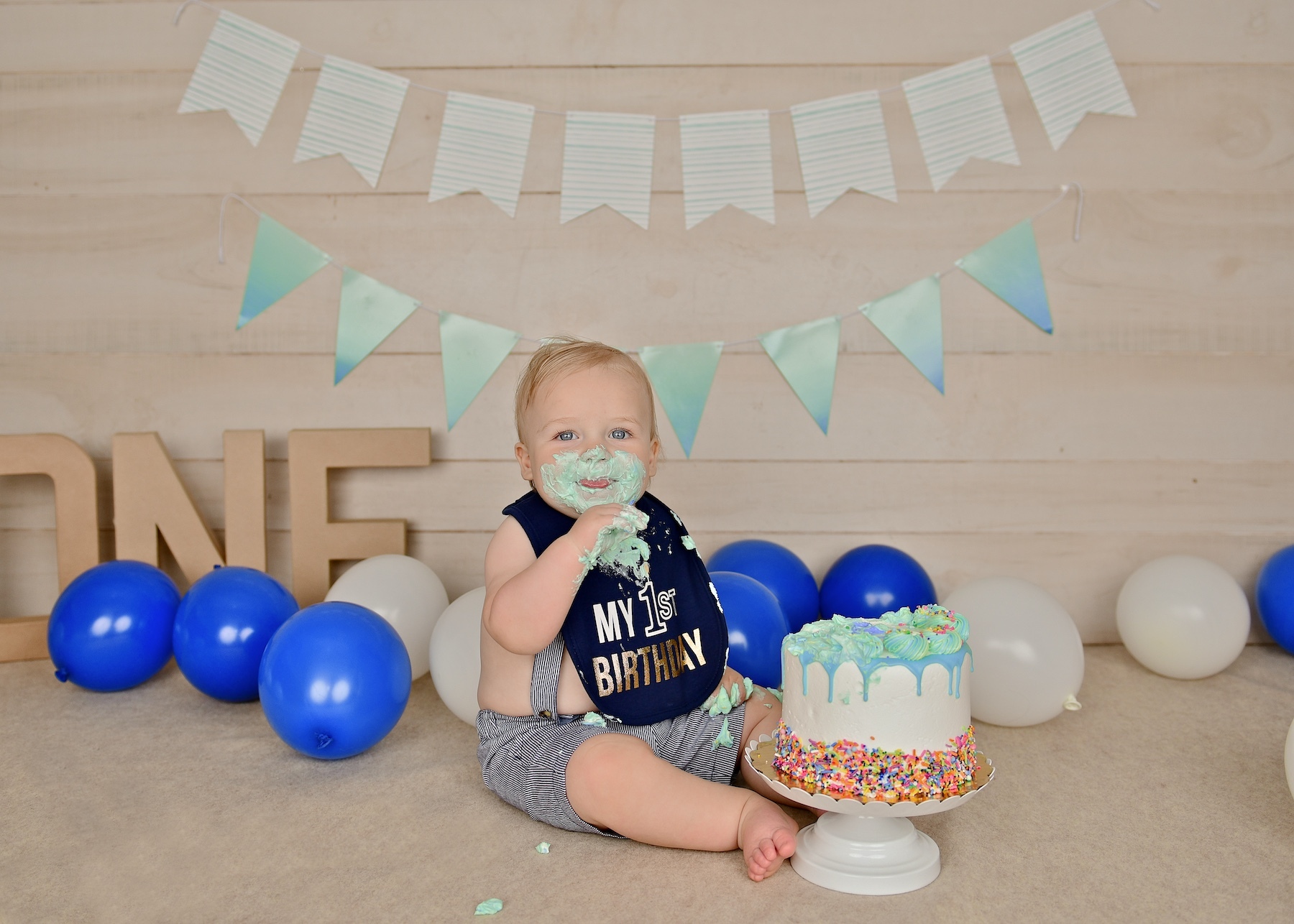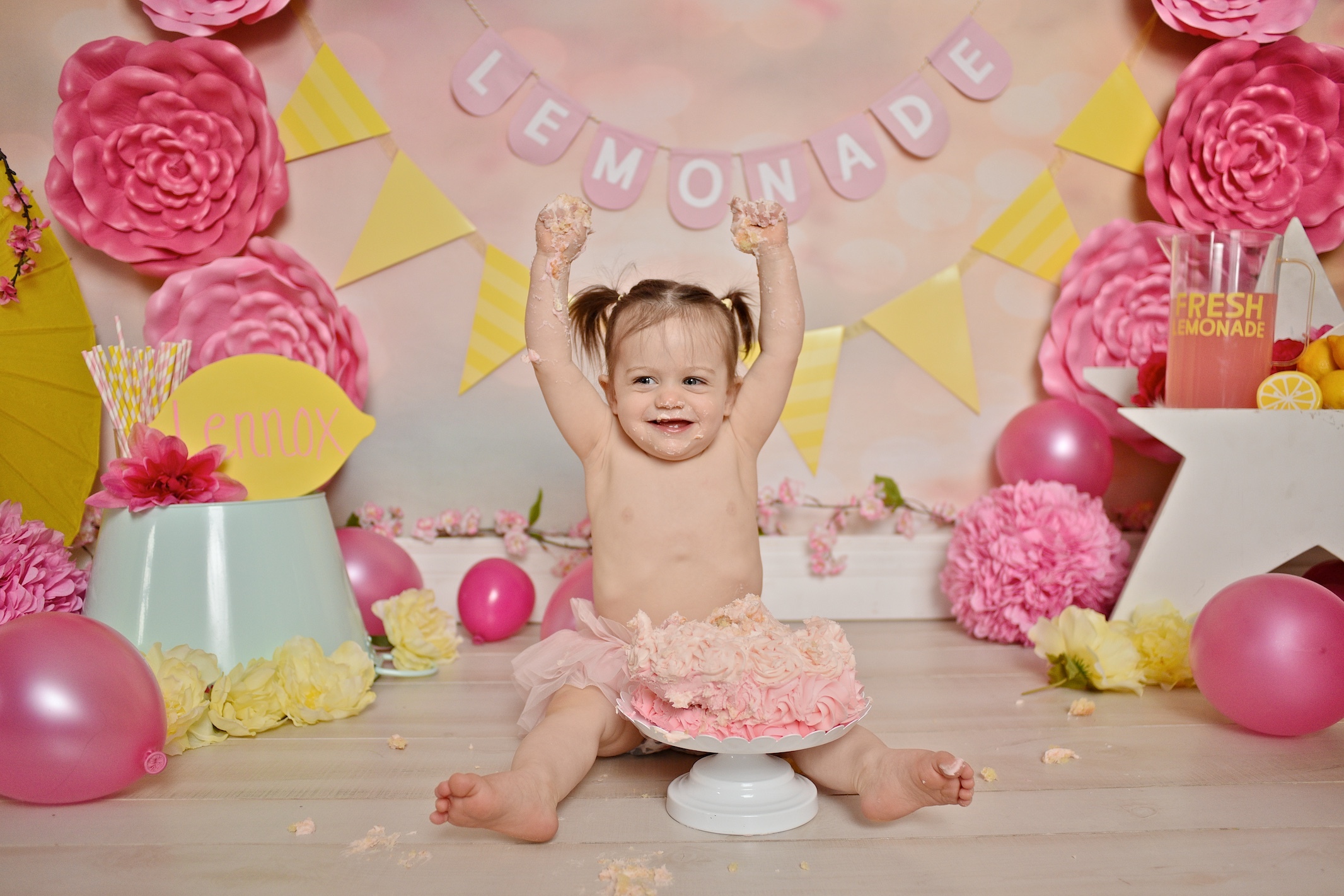 We will also provide wet and dry towels for you to clean your cake covered kiddo off with after they are done smashing!