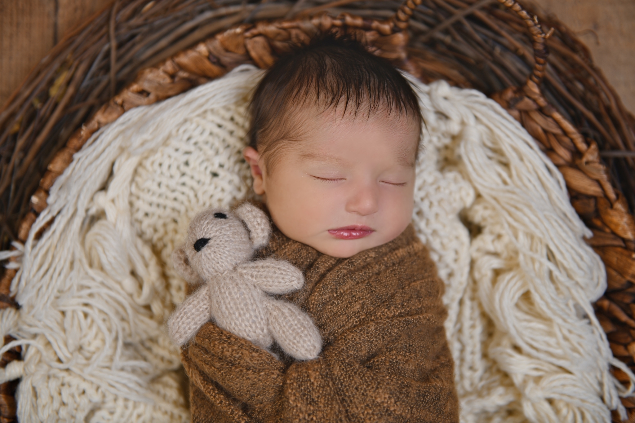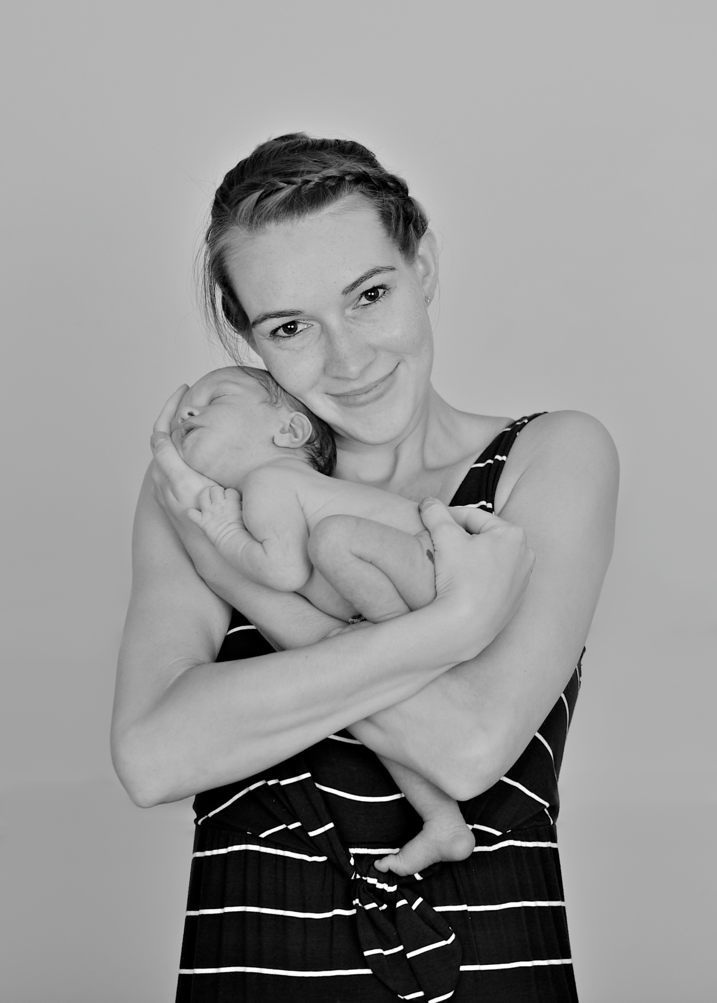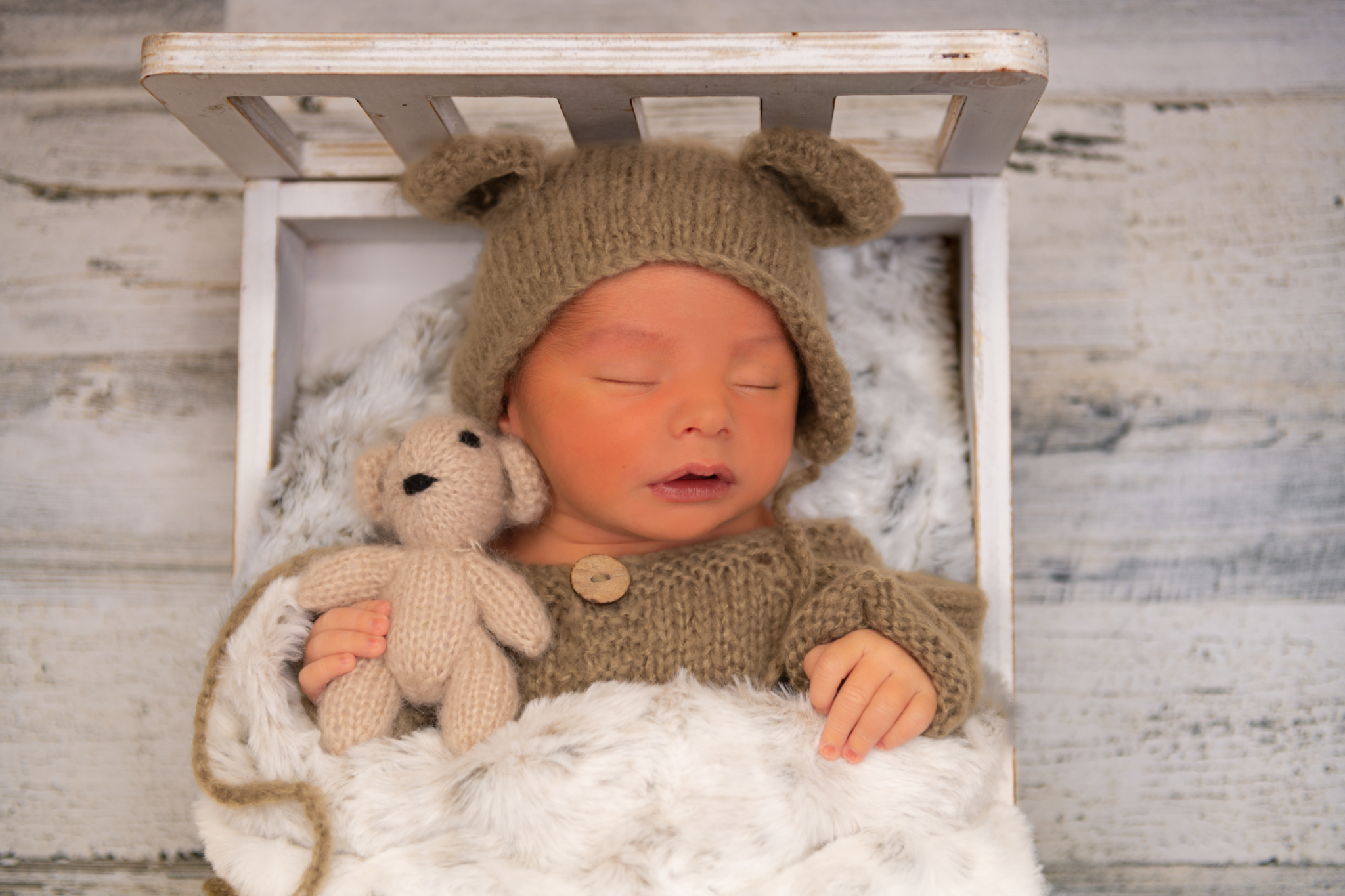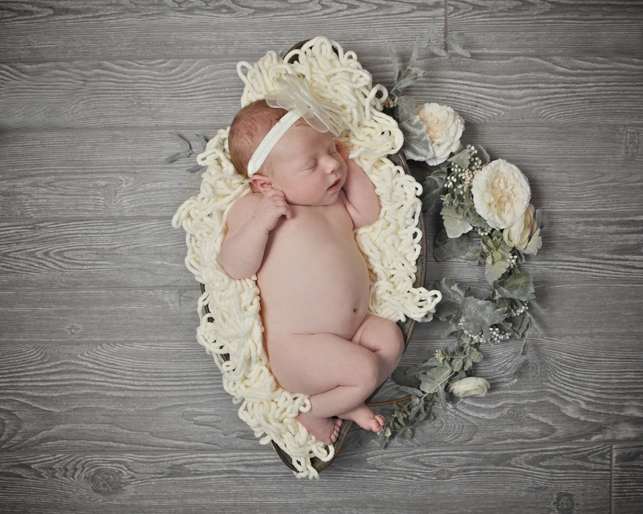 We know you're likely exhausted, and slightly overwhelmed! Our goal is to make this as stress-free and enjoyable as possible. So bundle up your precious cargo, get in the car and head on over! No need to pack a lot of things! We have everything necessary to create beautiful scenes and images for you right at the studio. From swaddles in every color to adorable outfits, headbands, name letters, posing pillows, bins, baskets and countless themed props....we've got you covered every step of the way. So if you show up empty handed, that's not a problem. When you arrive, the first thing we will do is swaddle your baby and then have you feed them and rock them to sleep. A sleeping baby allows for smooth posing and transitions and an overall easier photo shoot.