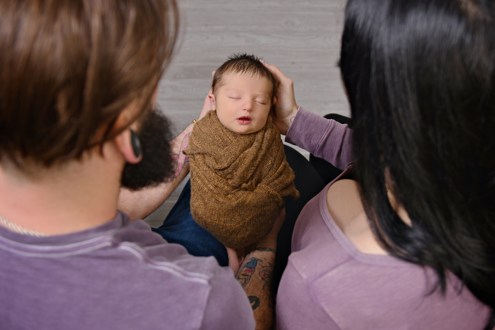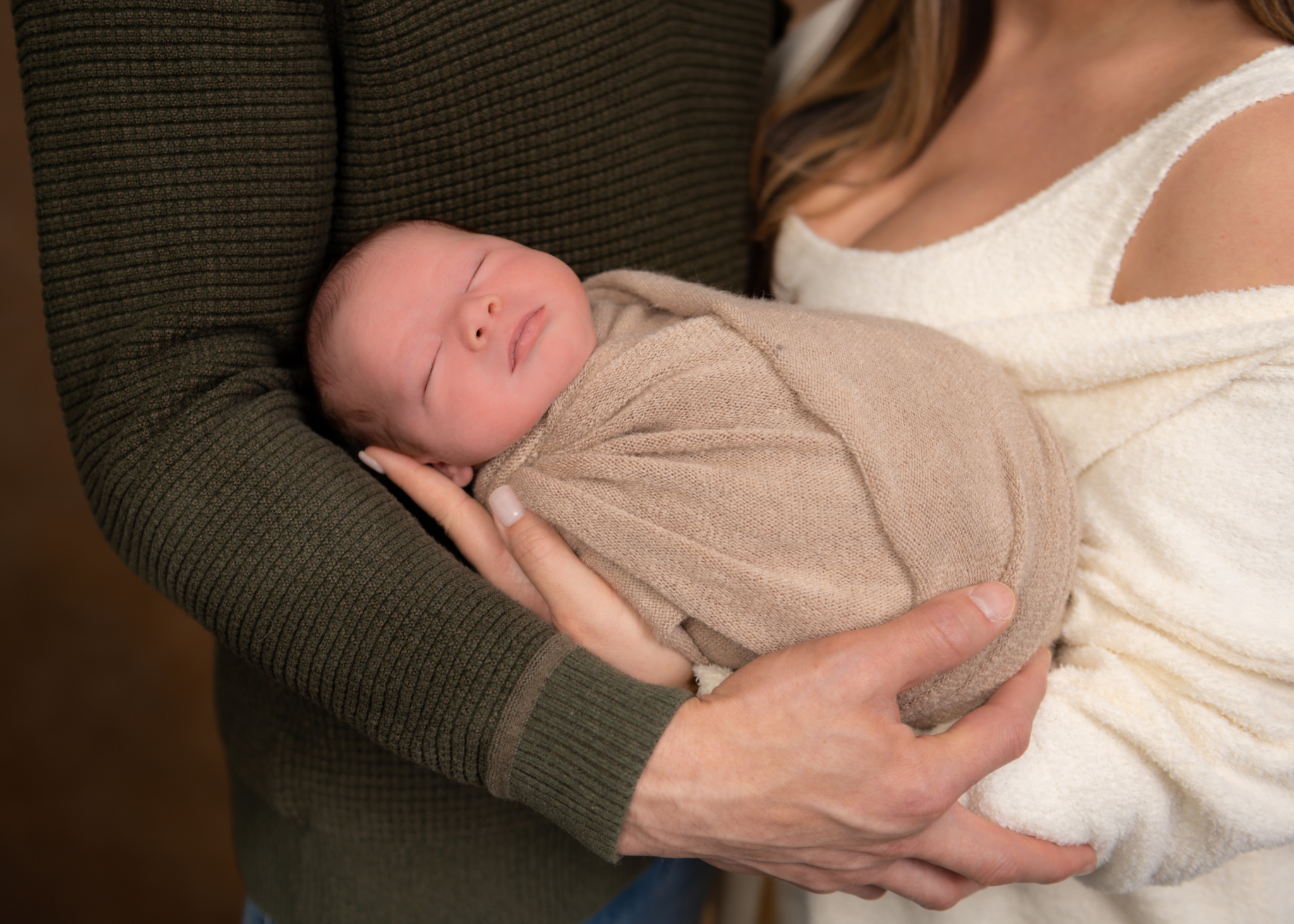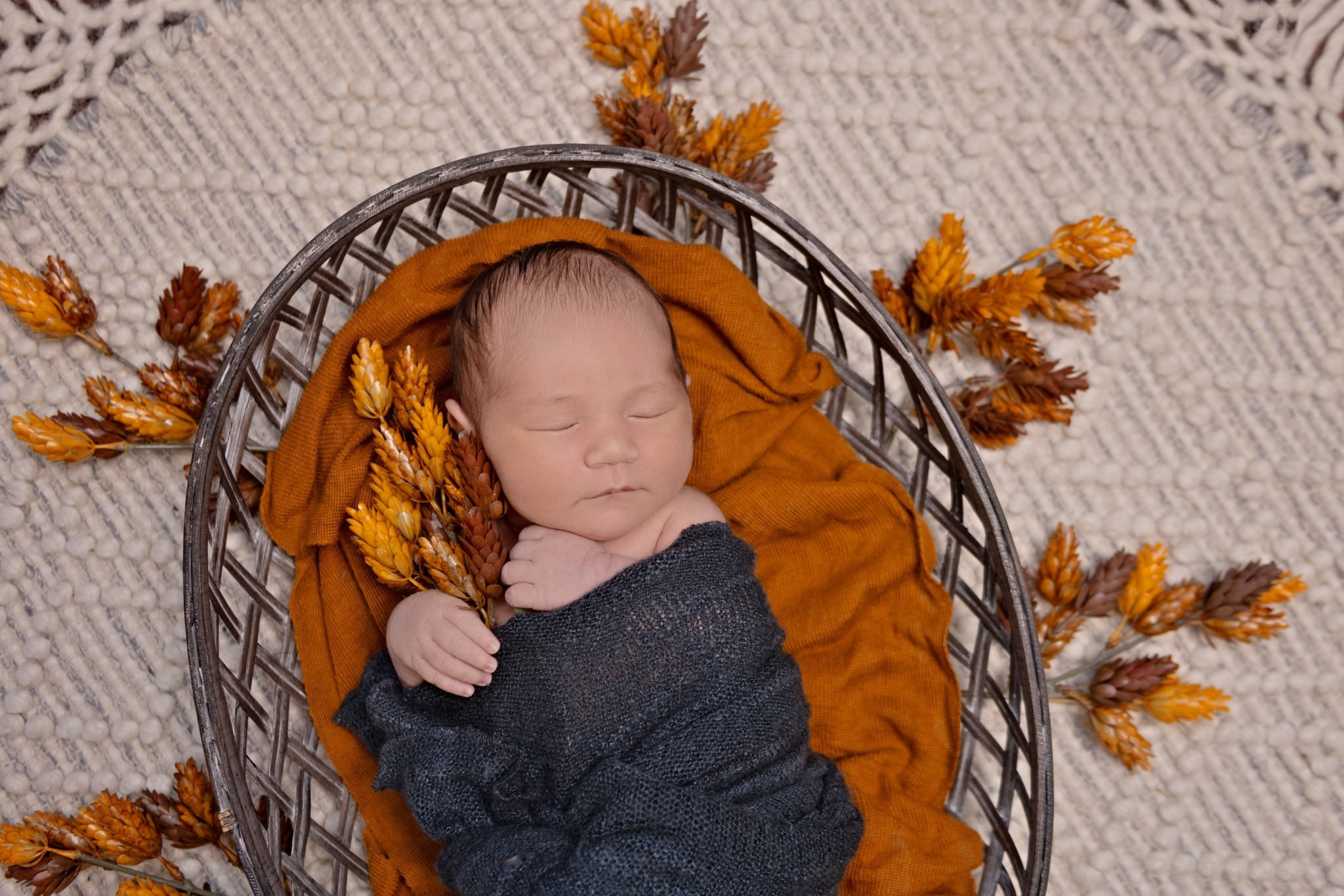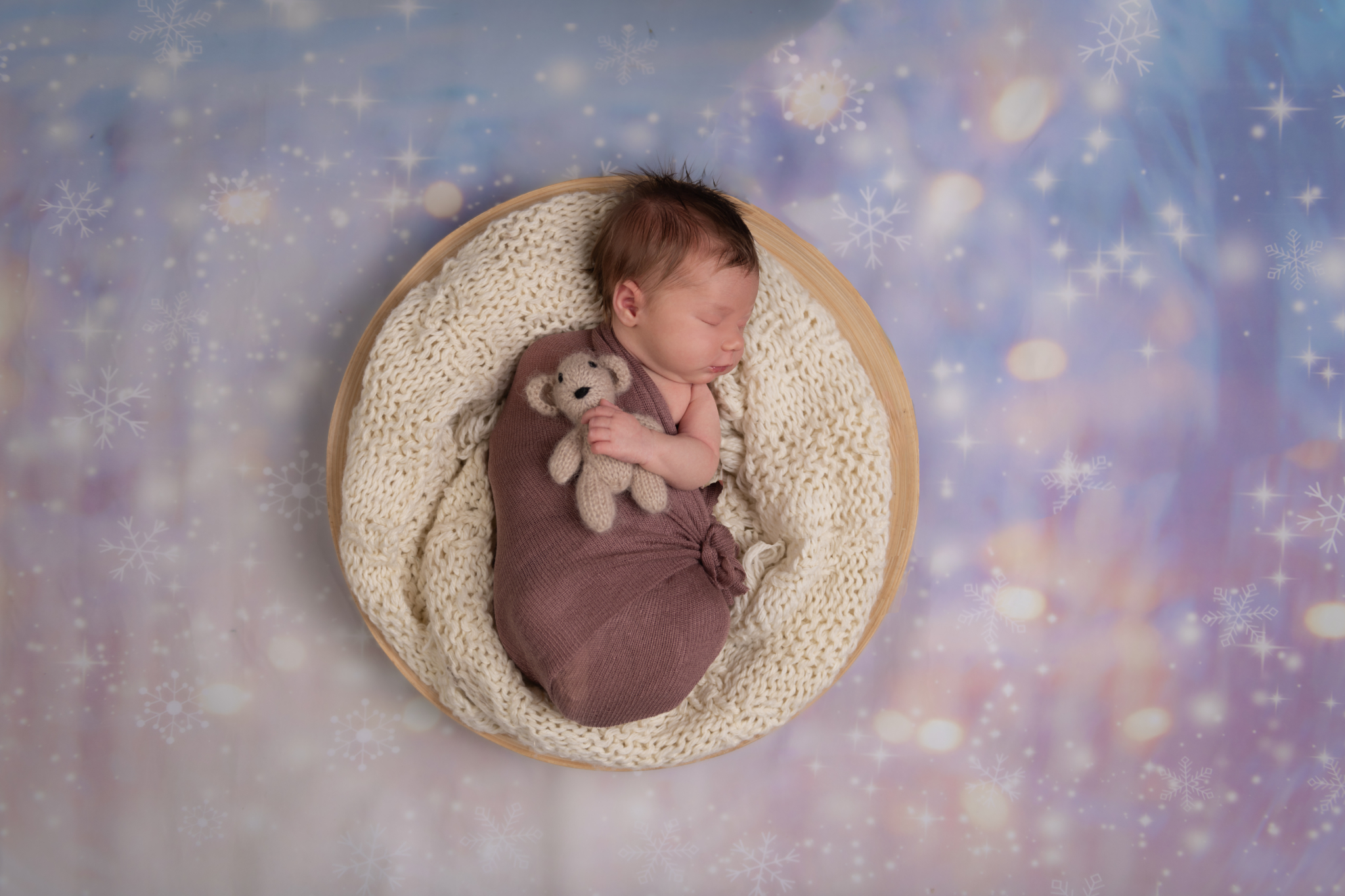 We know you're likely exhausted, and slightly overwhelmed! Our goal is to make this as stress-free and enjoyable as possible. So bundle up your precious cargo, get in the car and head on over! No need to pack a lot of things! We have everything necessary to create beautiful scenes and images for you right at the studio. From swaddles in every color to adorable outfits, headbands, name letters, posing pillows, bins, baskets and countless themed props....we've got you covered every step of the way. So if you show up empty handed, that's not a problem. When you arrive, the first thing we will do is swaddle your baby and then have you feed them and rock them to sleep. A sleeping baby allows for smooth posing and transitions and an overall easier photo shoot.
