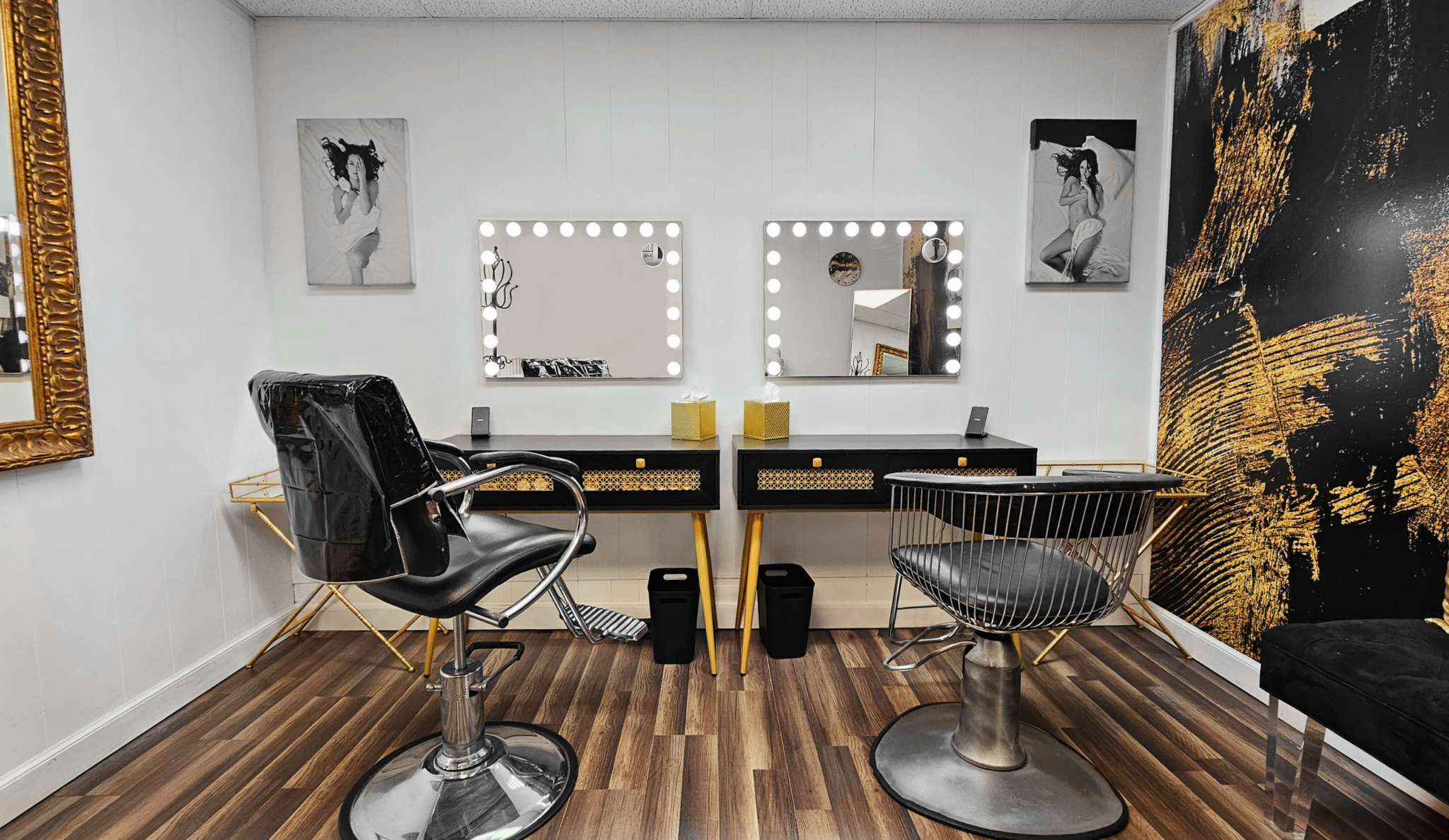 - Salon room and natural light makeup counters
